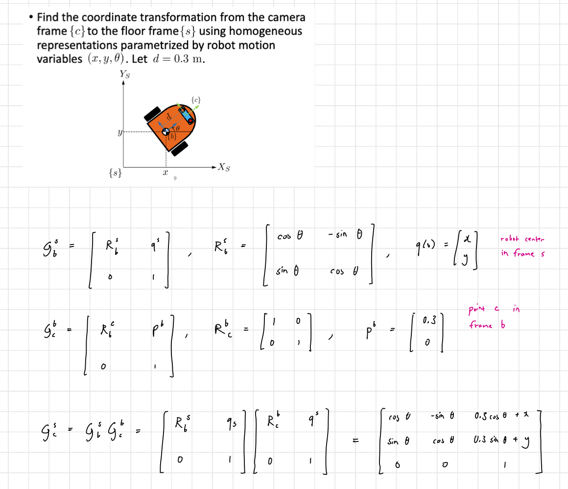 We can represent this rotation + translation as one matrix using Homogeneous Coordinates.
