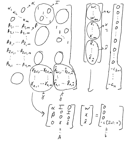 Now we can re-express our IOP equations in terms of these vectors and matrices. Notice that are all constants. The only variables are . Re-arranging our above equations: