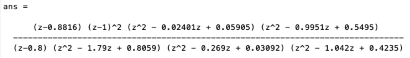 D = minreal(W / X); % zpk controller zpk(D) % to see the same factorized form3. Expand to numerator & denominator polynomials in z