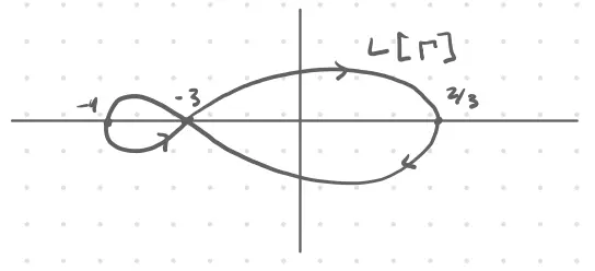 This tells us that with , we have encirclements of the origin. The system one unstable open-loop pole (). Thus, since , the system is not closed-loop stable.