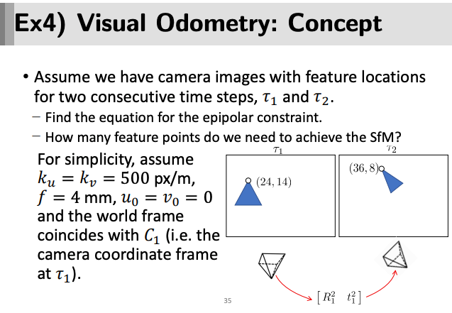 Typically, to solve this we need 8 points (Eight-Point Algorithm). Taking advantage of other constraints (on , etc.), this can be reduced to five points (Five-Point Algorithm).