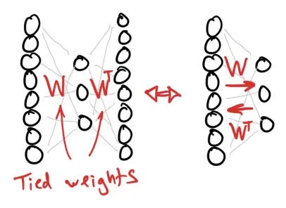 If we allow and to be different, then it’s just a 3-layer network. If we enforce that , then we say that the weights are tied.