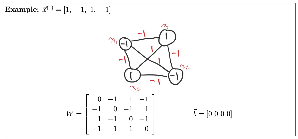 Note that Hopfield networks are asynchronous, such that only one unit is updated at one time.