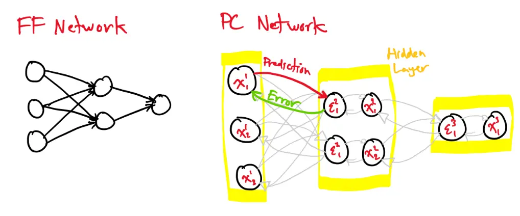 Comparing feedforward networks and predictive coding networks: