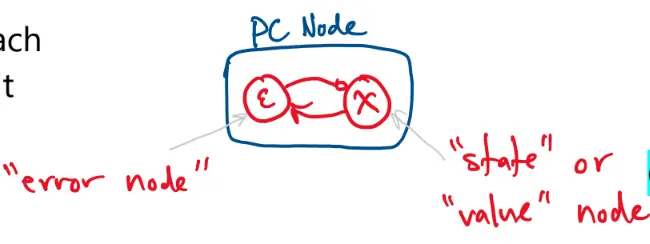 In a PC network, each hidden node is split into two parts: an error node and a state/value node.
