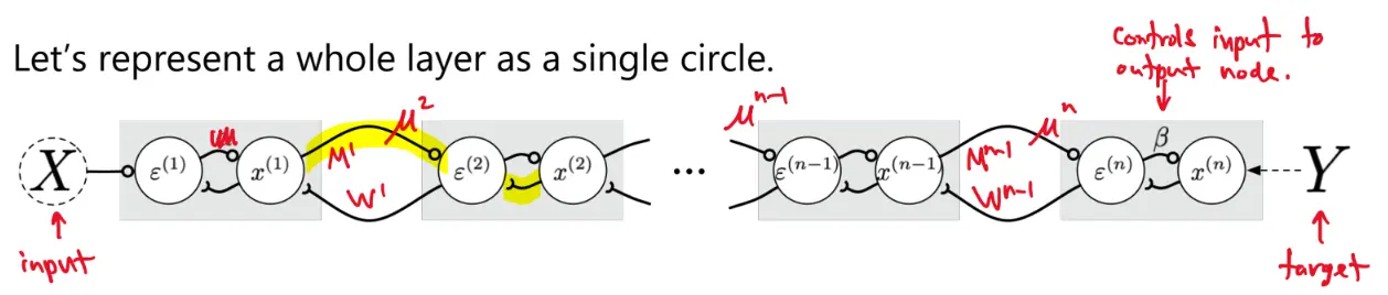 To run it, we just clamp the input and run the network to equilibrium. Once at equilibrium, is the network’s output.