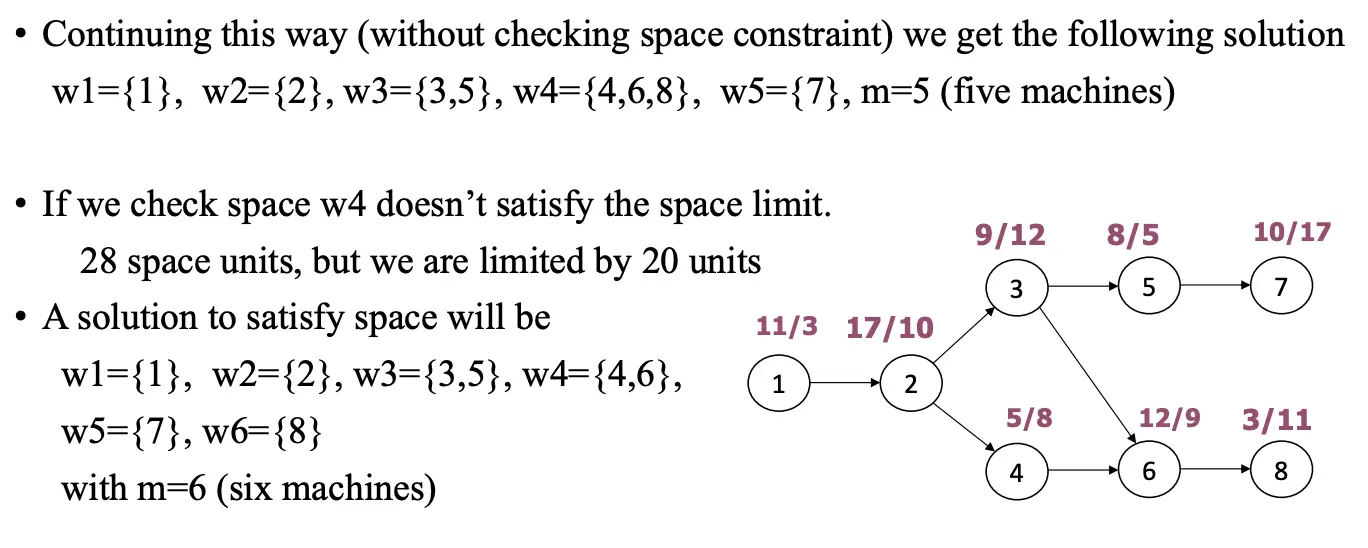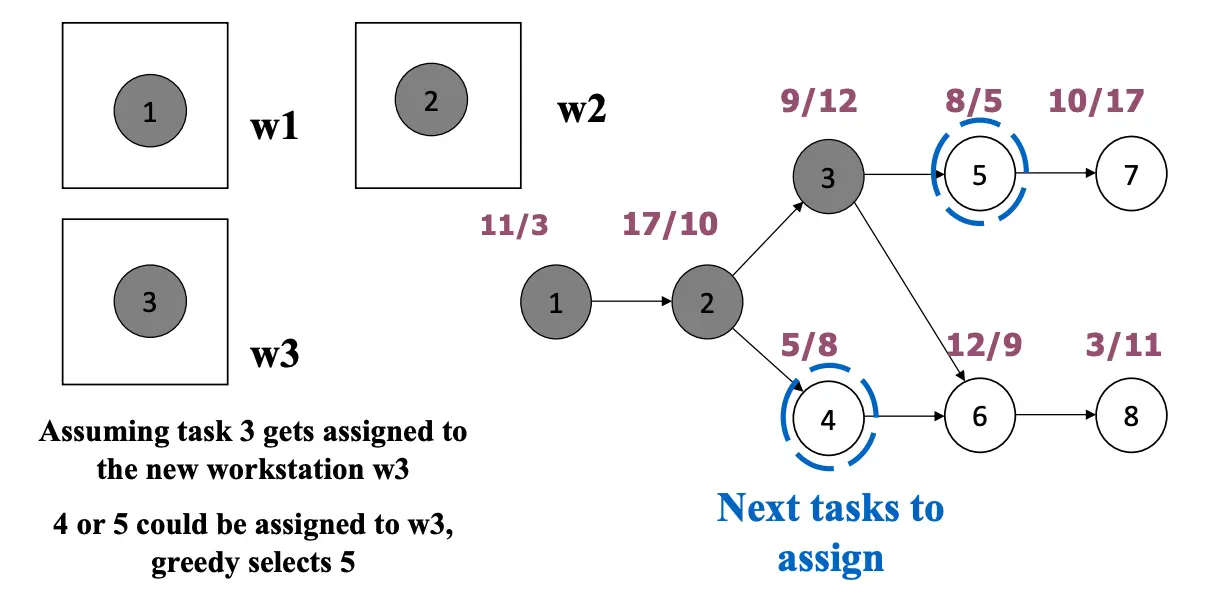 Let be the set of tasks that are not yet assigned to a work station, whose predecessors are all assigned to work stations.
