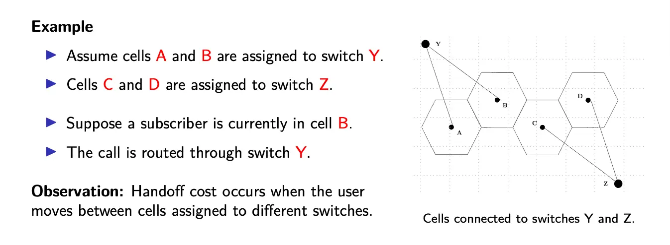 Let be the handoff cost between cells and when they are assigned to different switches.