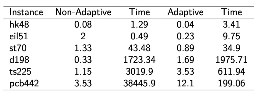 Each ant is allowed to select suitable values of its parameters, and select the next solution component. Each ants own parameter values are then adaptively selected using an ant approach, where a separate ant pheromone matrix is kept for learning these values. No heuristic information is used.
