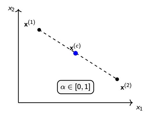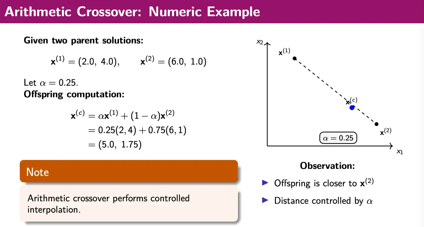 Given two parent solutions, , an offspring is generated as a convex combination: