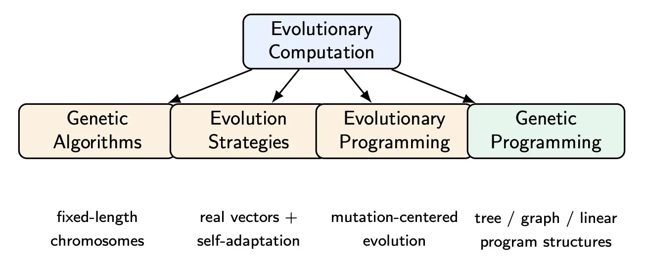 How does GP fit in with other evolutionary computation methods? It’s distinctive because the solution structure itself evolves.