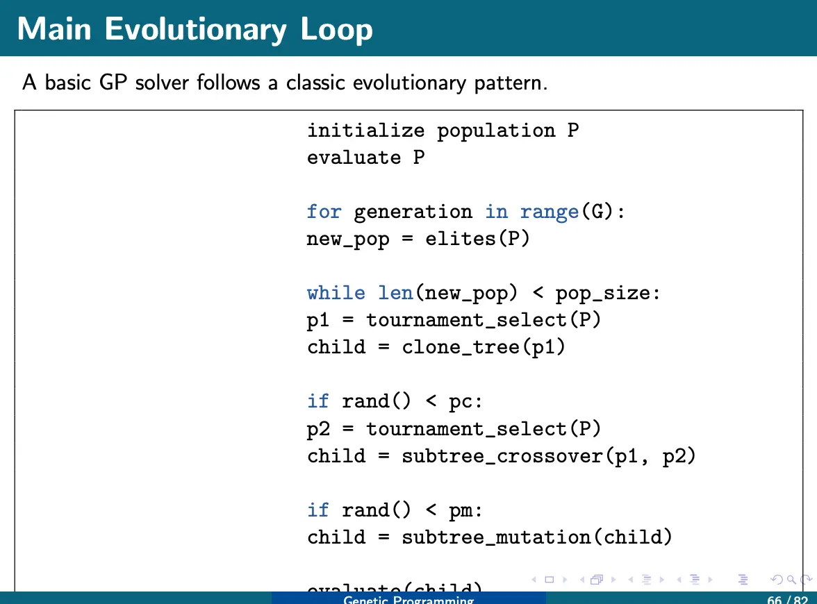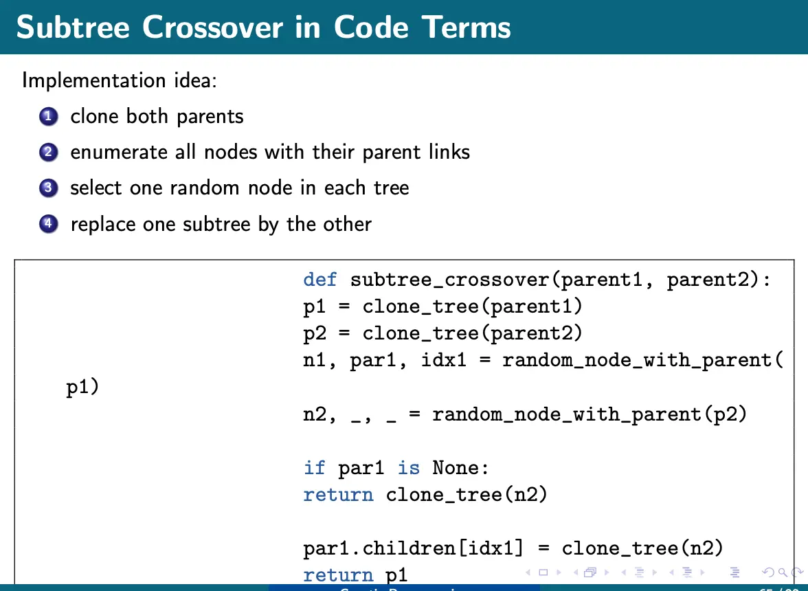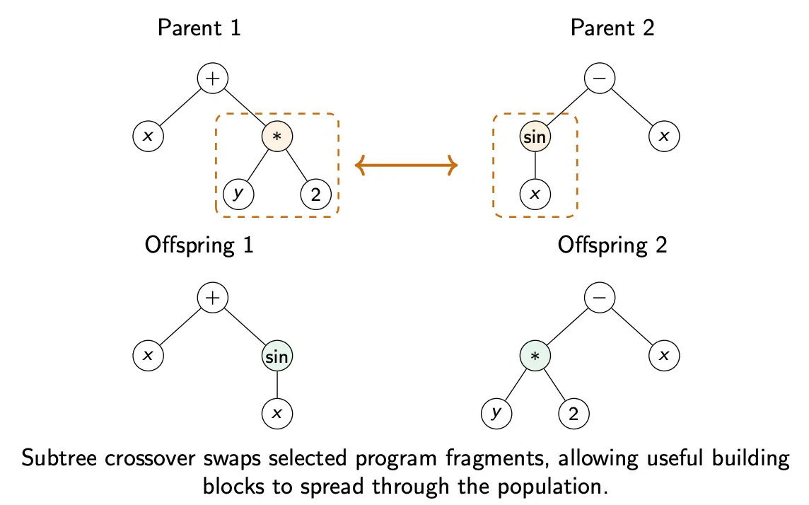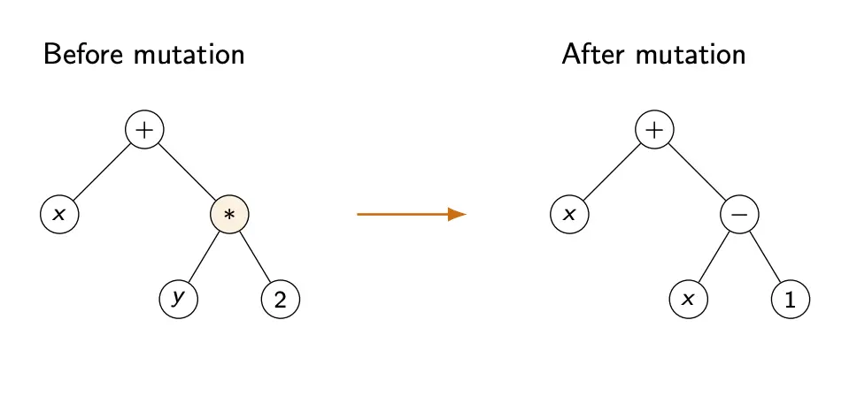 - Shrink mutation: Replace a subtree with a simpler subtree or terminal.