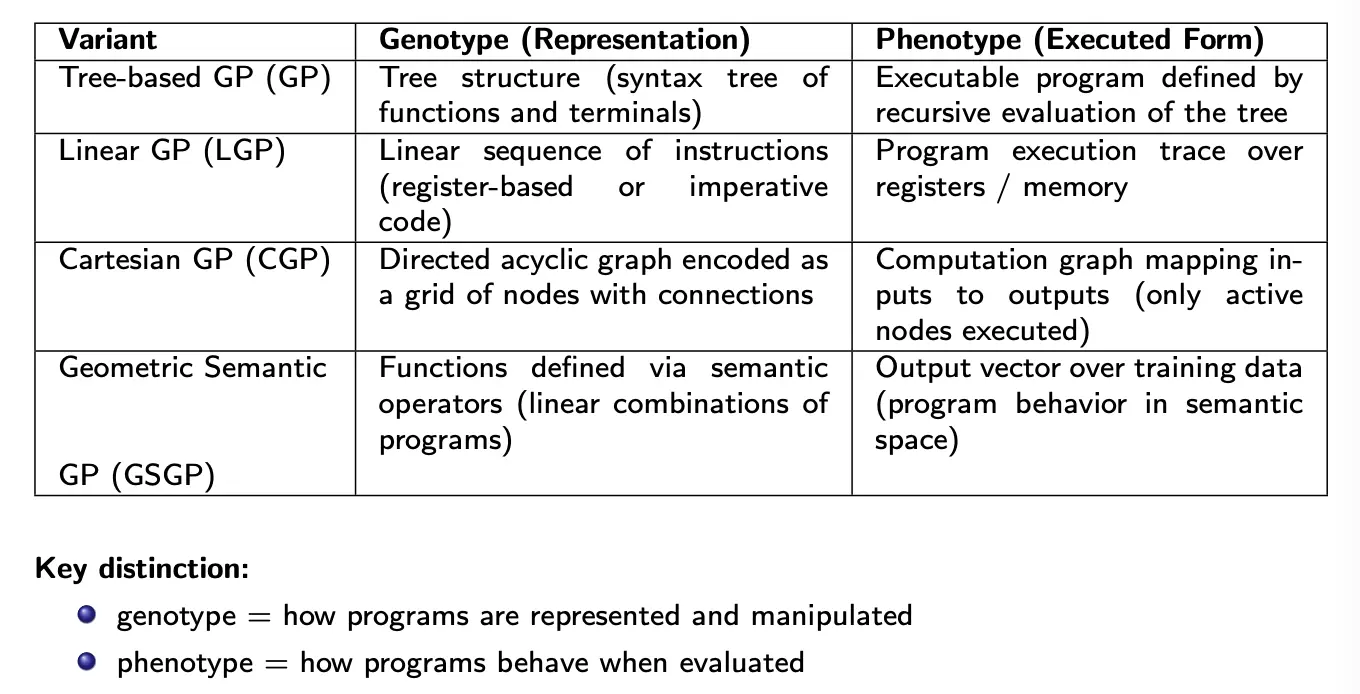 We can also view GP as a heuristic search in the space of programs. Rather than enumerating all possible programs, GP explores the program space adaptively by favoring structures that perform well on the task.