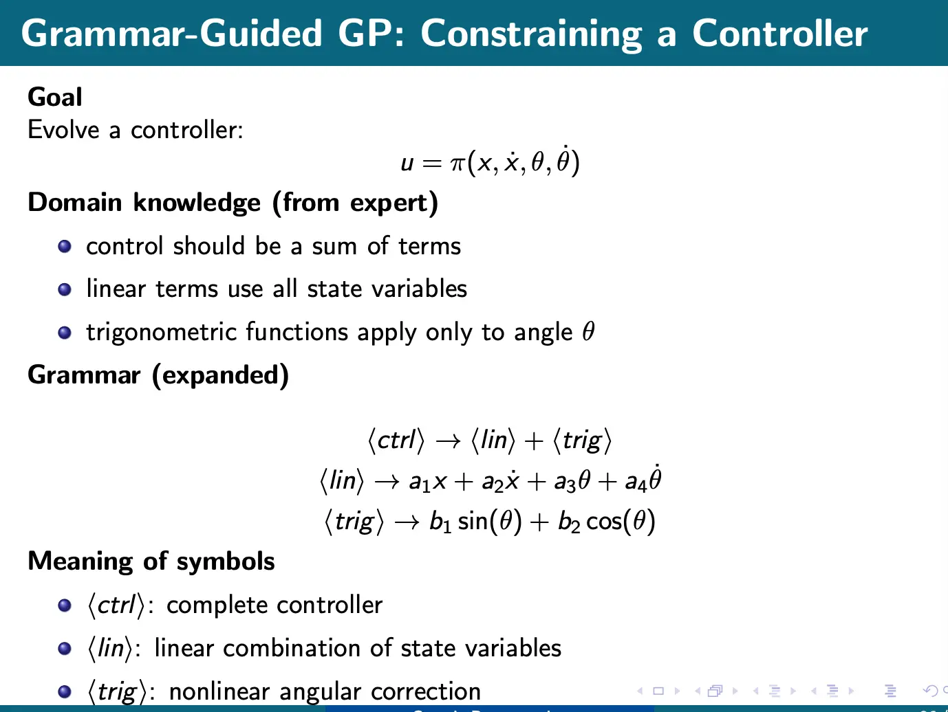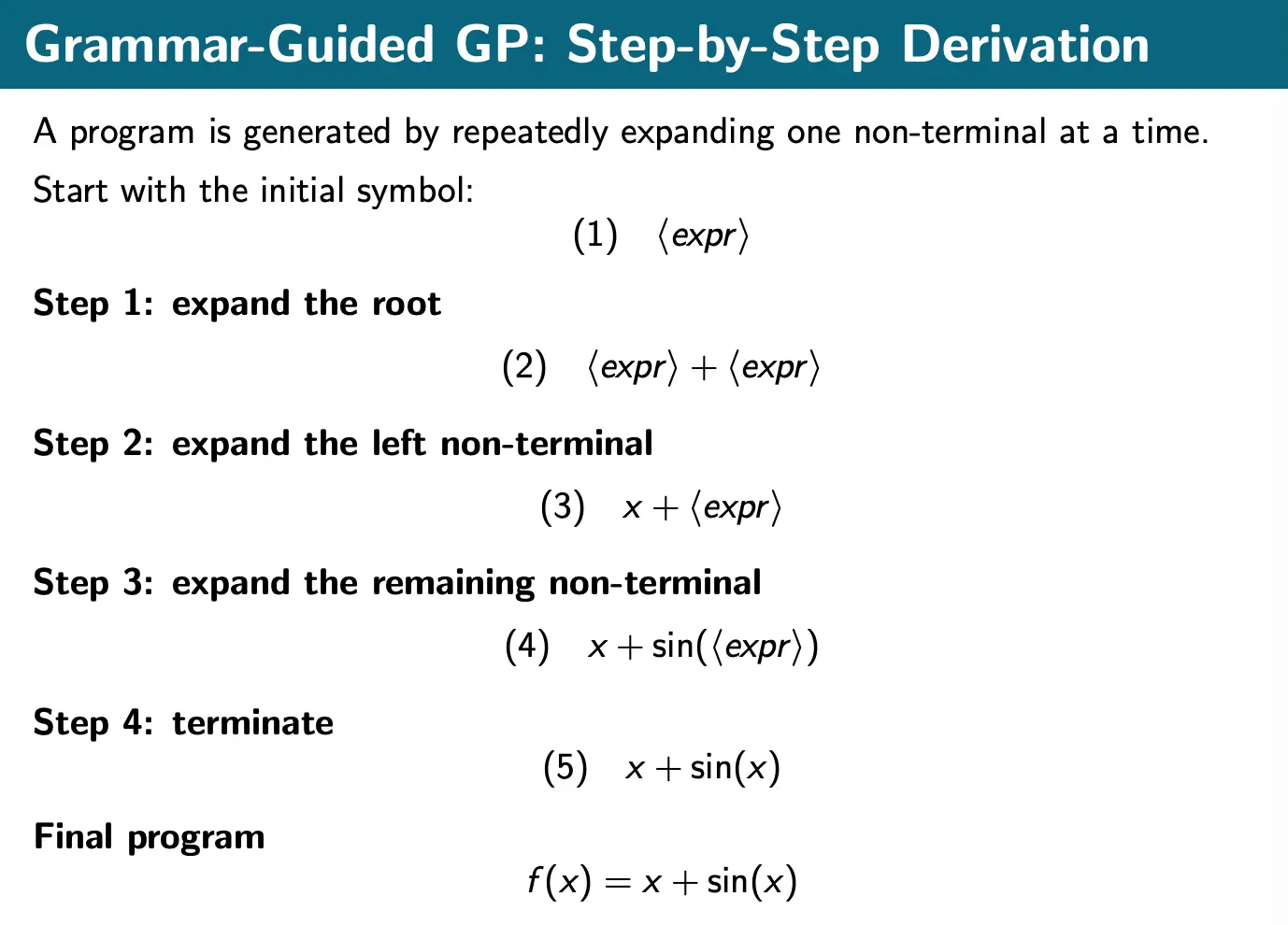 In unconstrained GP, the search space is vast as there are many syntactically valid but irrelevant or meaningless programs. We can narrow this down by using a formal grammar to define the set of admissible programs:
