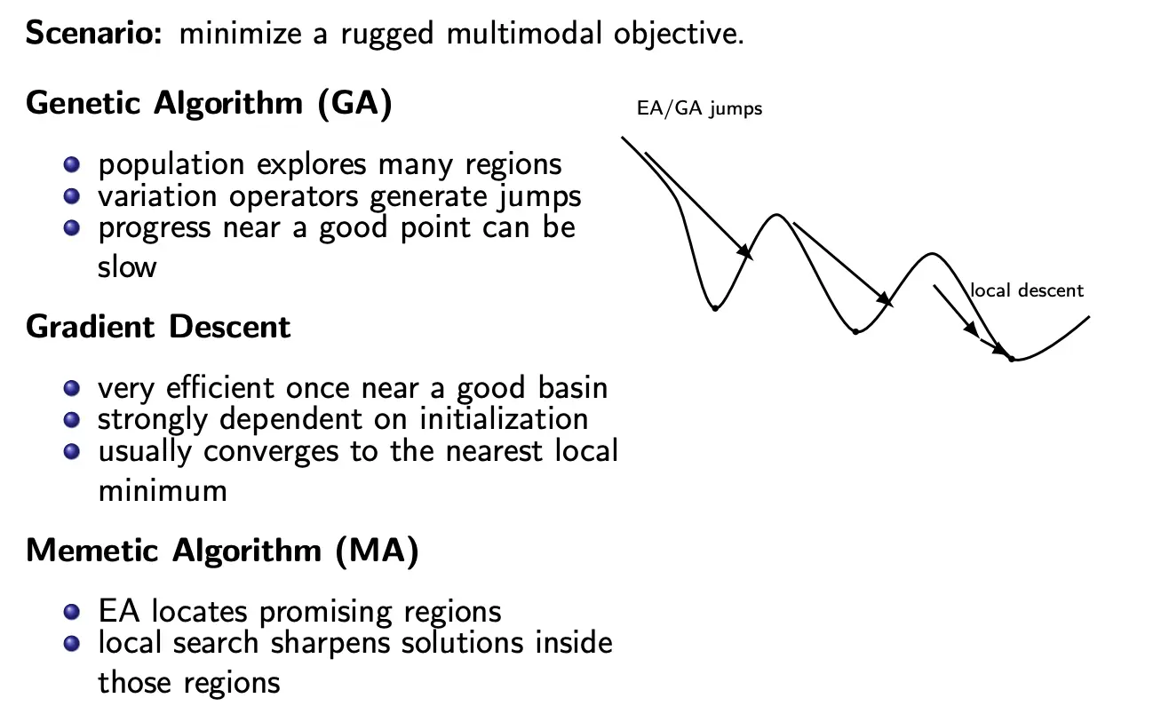 We can also think of EA as providing guidance to find basins to enter, and local search as determining where inside that basin is the lowest point.