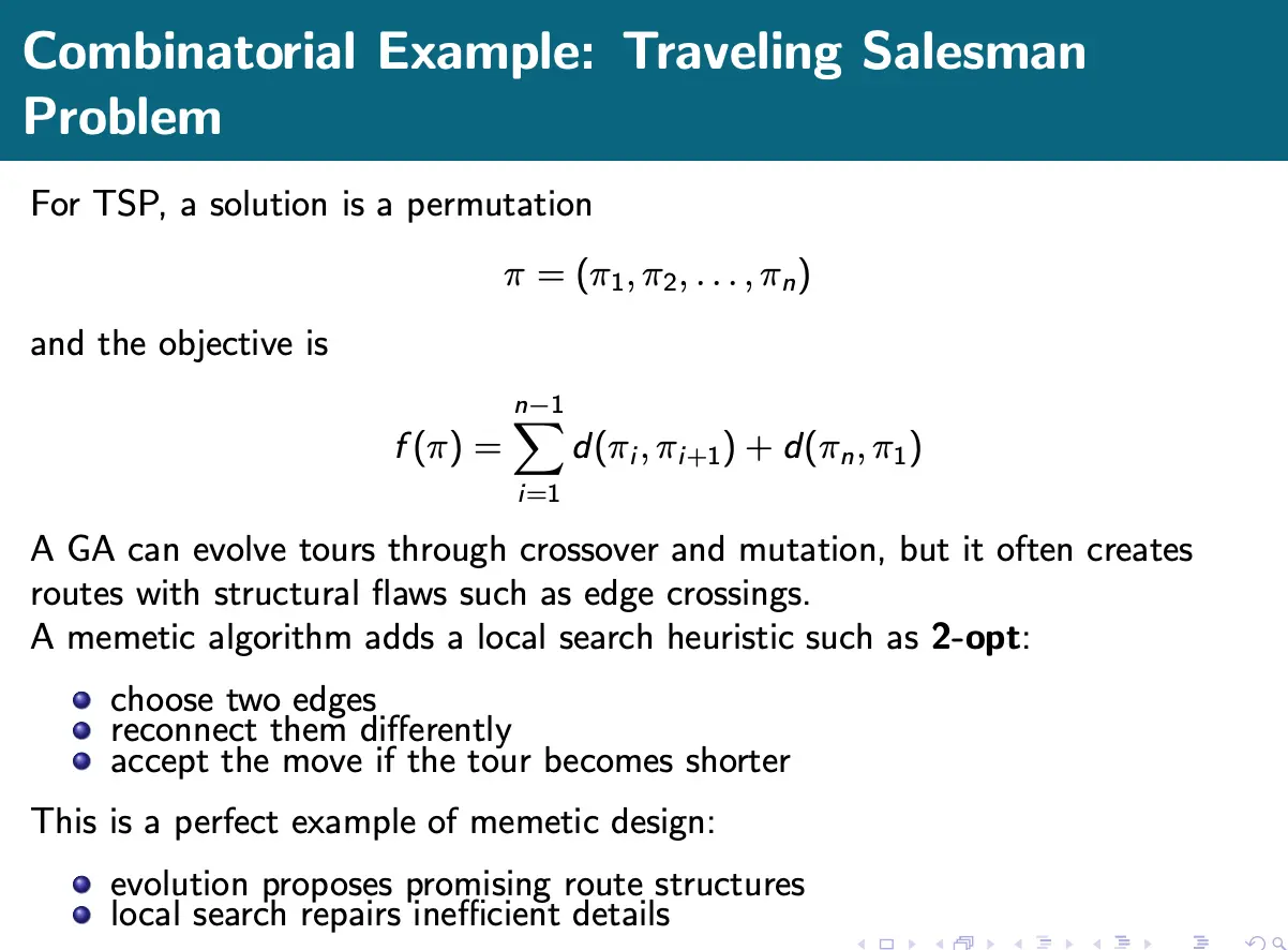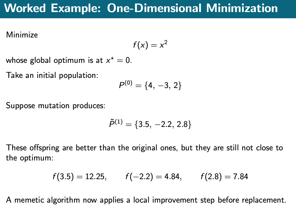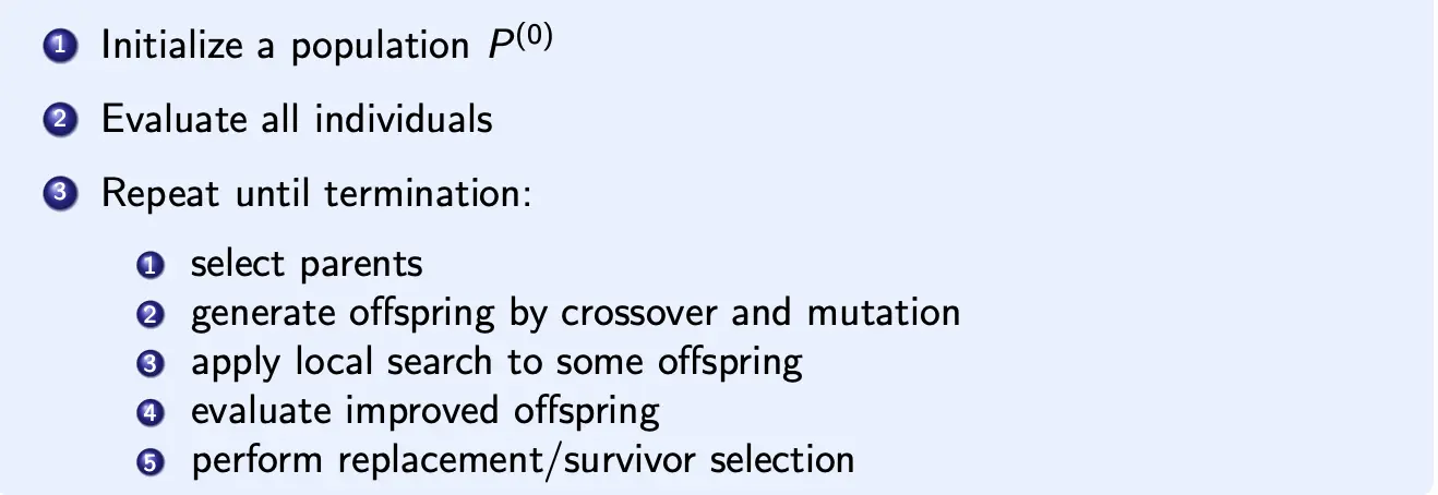 Formally, if denotes the evolutionary variation operator and the local search operator, a pure evolutionary algorithm would be: