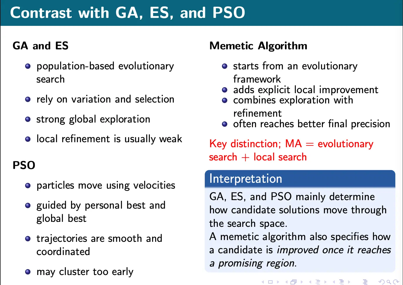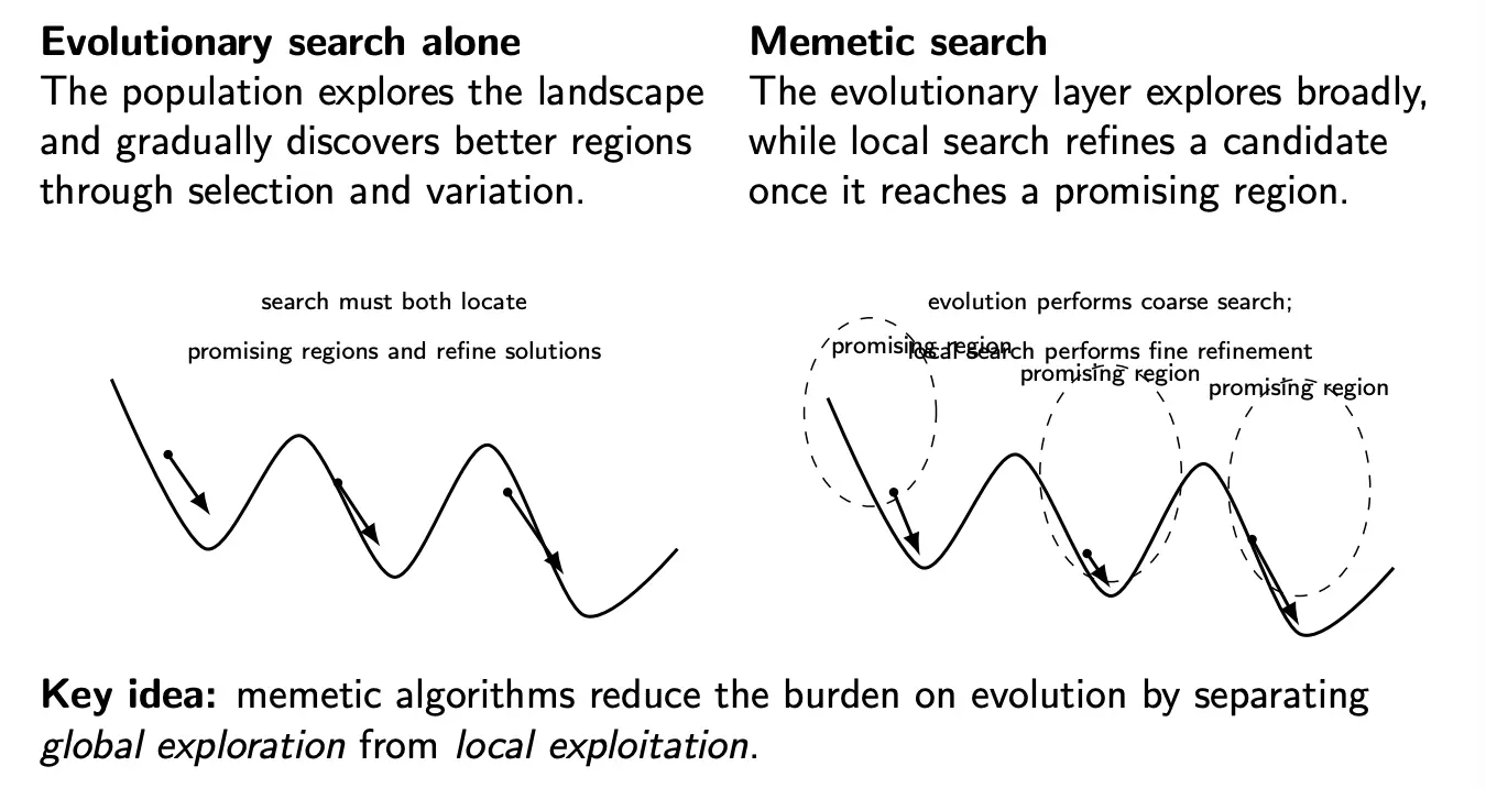 or do exploratory forcing to re-inject diversity and allow basin transitions. This is the local dynamical interpretation of memetic search.