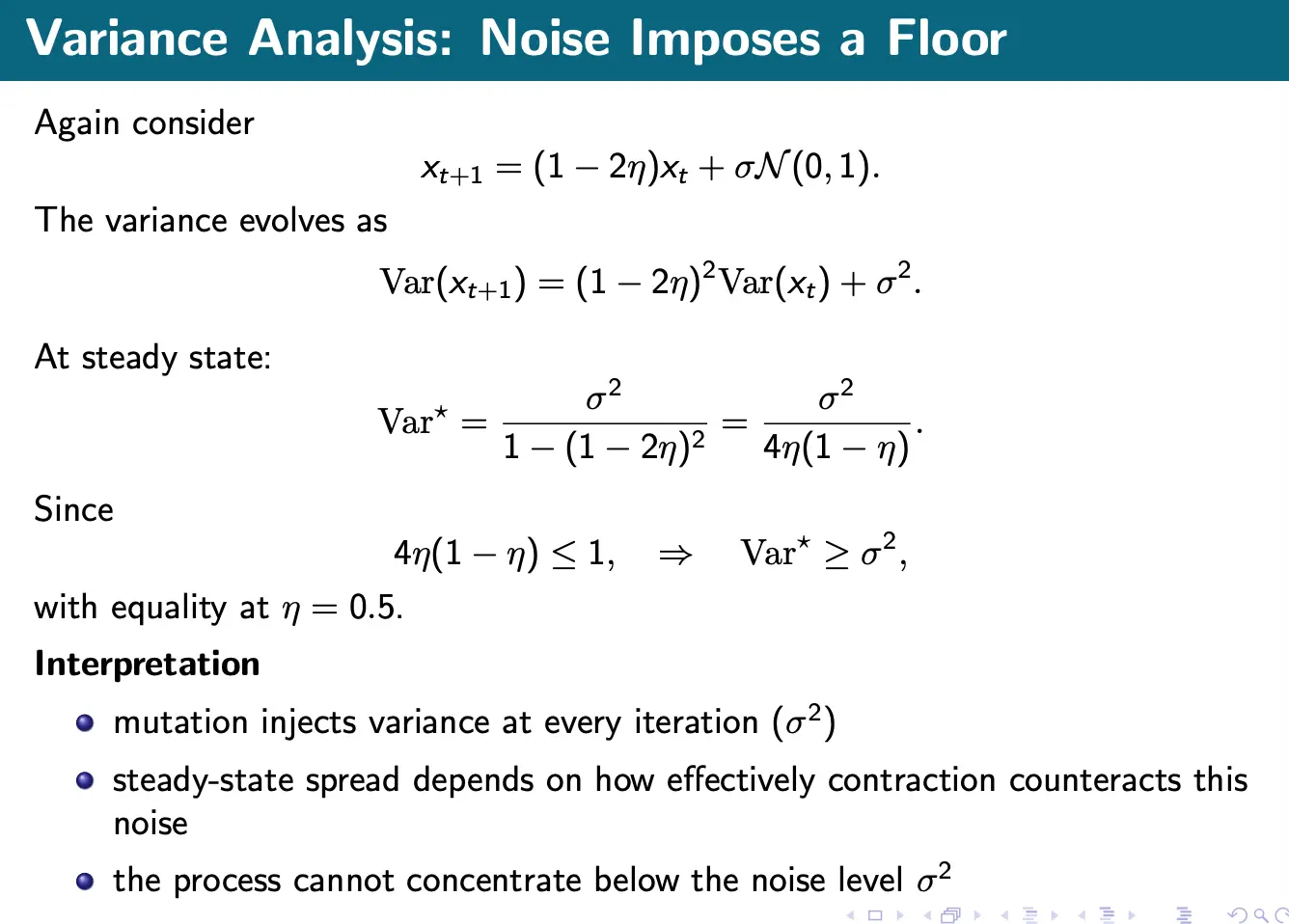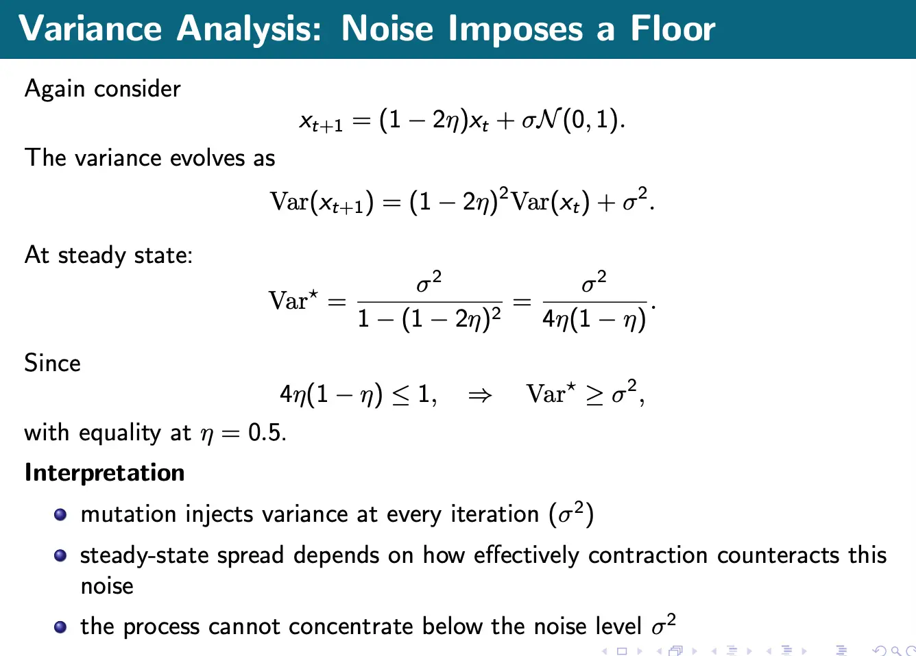 - Small , moderate gives stronger local exploitation. This gives tighter concentration, with variance limited below by .