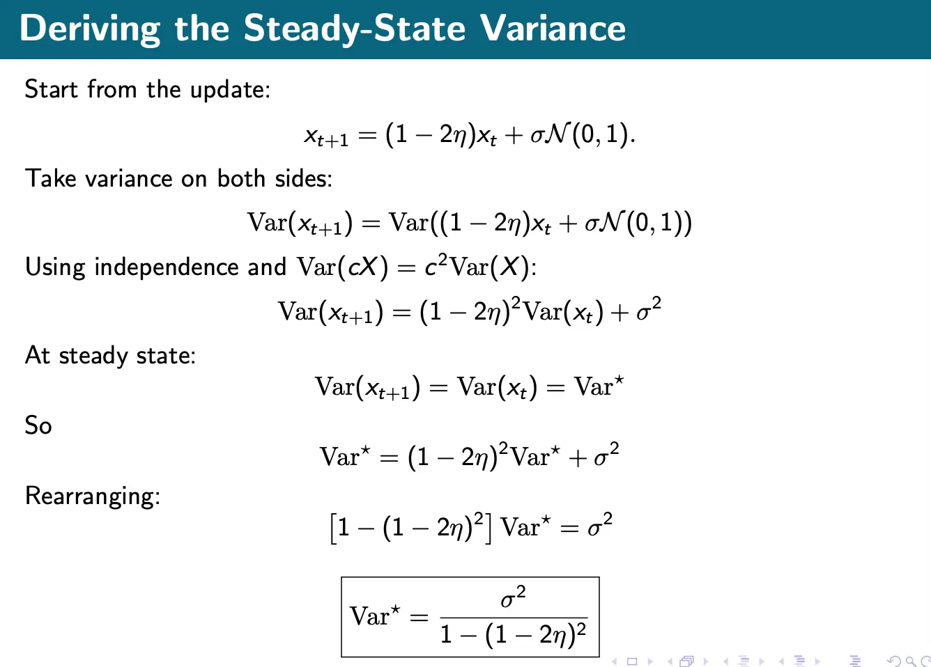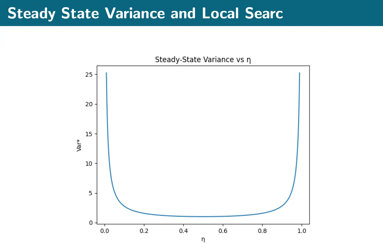 - Large , small gives highly exploratory behavior, with weak refinement. This results in large steady-state variance.