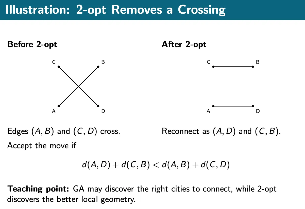 This highlights a practical fact: Memetic algorithms often use fewer generations, but each generation is more expensive. So, they are attractive when better solutions justify more effort per candidate