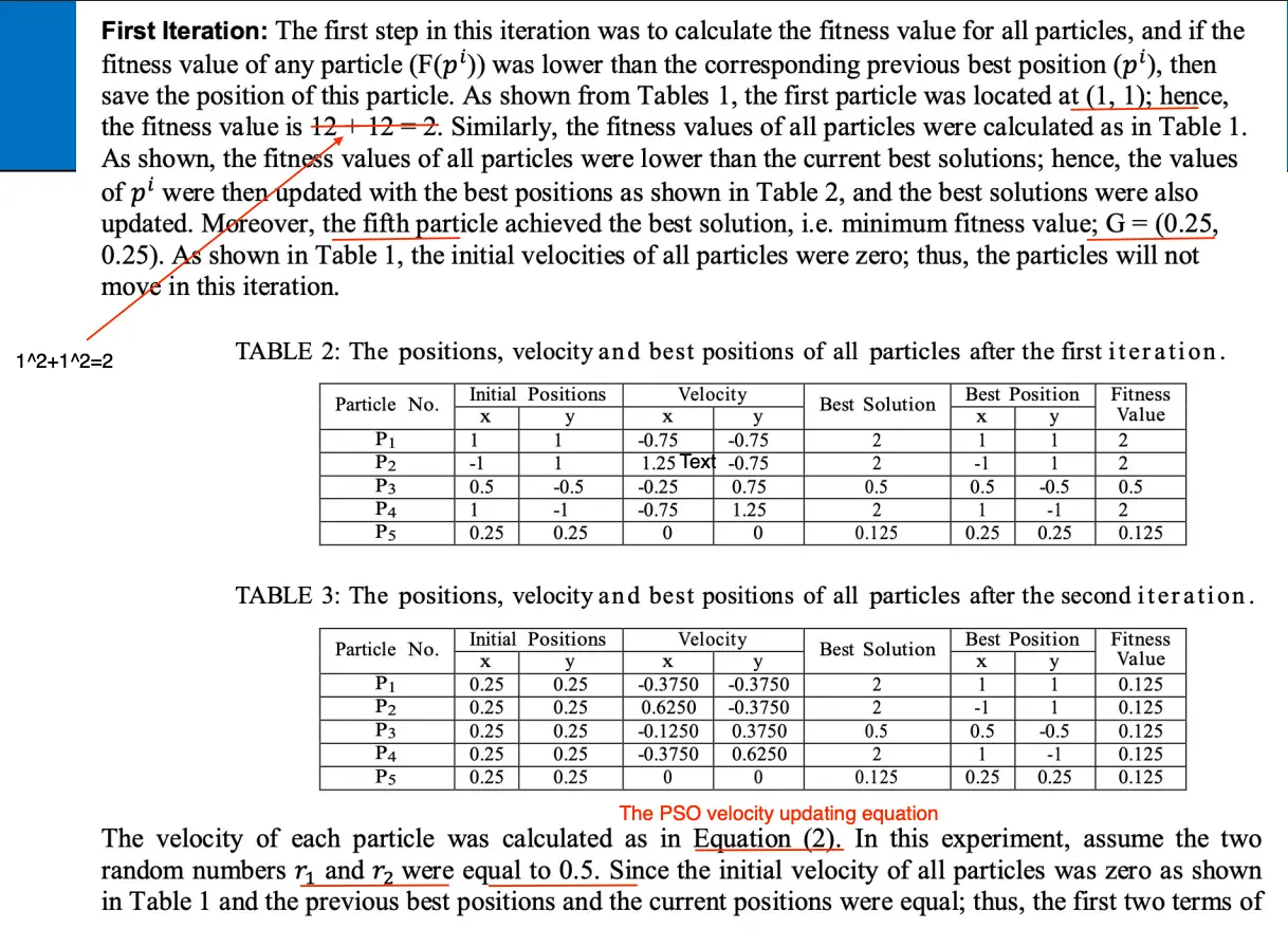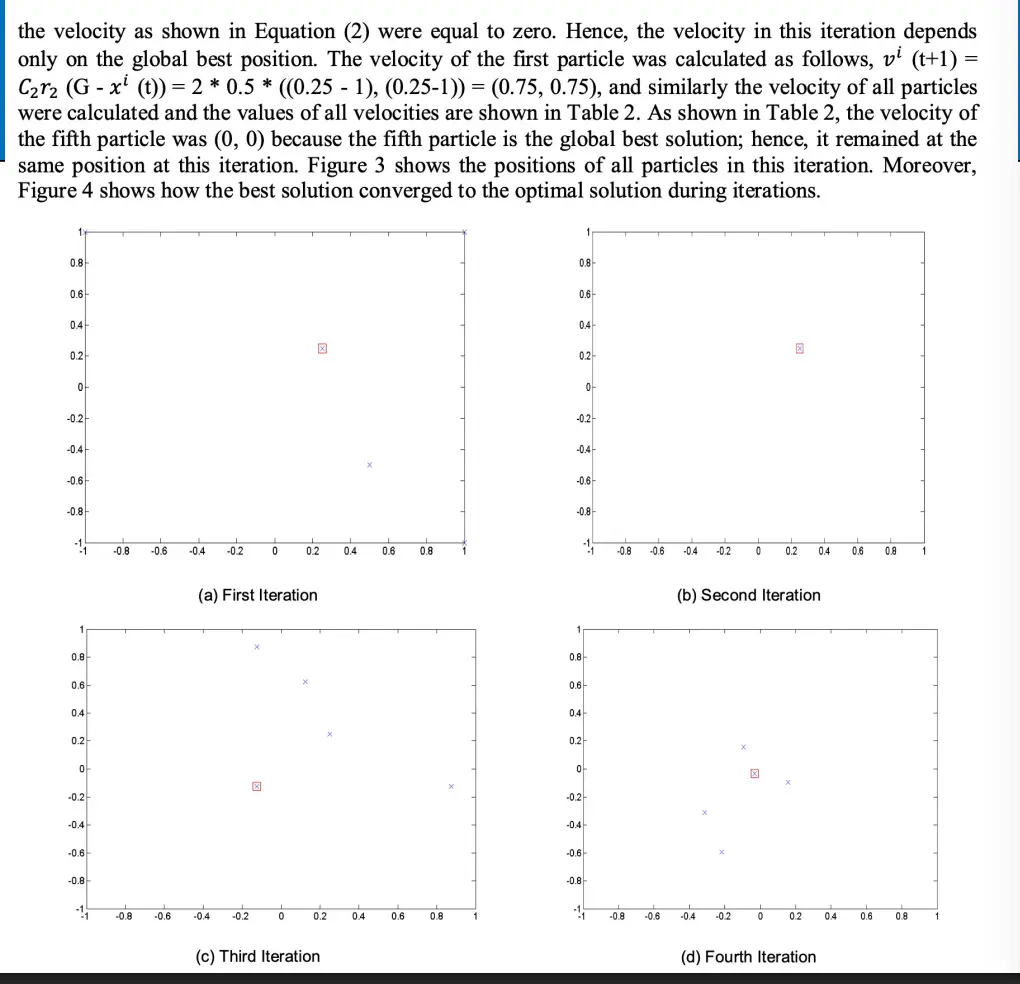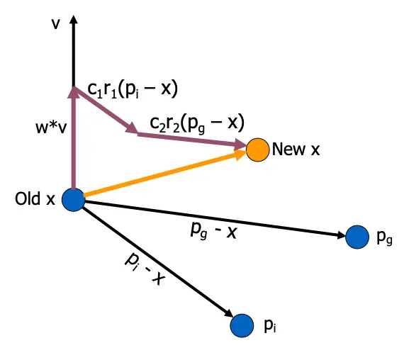 Note that the random number are generated for each dimension and not for each particle. (If the function we are optimizing has 3 variables, the particle will have 3 dimensions). If the numbers are generated for each particle, we call it linear PSO, which is usually sub-optimal to PSO.