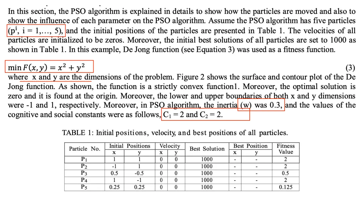The inertia term reflects the fact that a particle cannot suddenly change its direction of movement. The and factors balance the weights in which each particle trust its own experience (cognitive) and trust the swarm component (social).