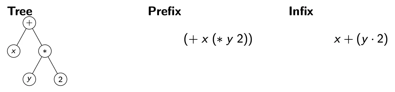 There is a distinction that we can make: semantic vs. syntactic search spaces. Two different trees can compute the same function. For example, and . This means that GP searches in a huge syntactic space, but a smaller semantic space. This redundancy can both help and hurt search.