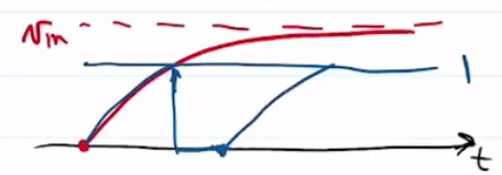 Note that , as is the threshold where we trigger a spike. After the spike, we enter the refractory period and start integrating again with the same trajectory.