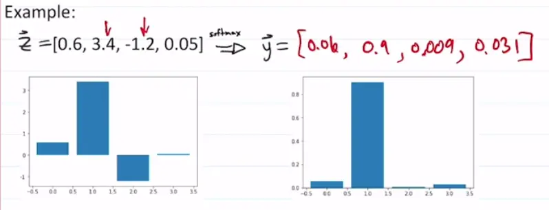 so they create a probability distribution. Thus, we can turn a list of inputs (that are not a distribution) and turn them into a distribution with softmax.