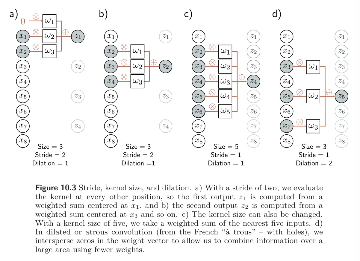 We can characterize a larger family of convolution operations by their stride, kernel size, and dilation rate.
