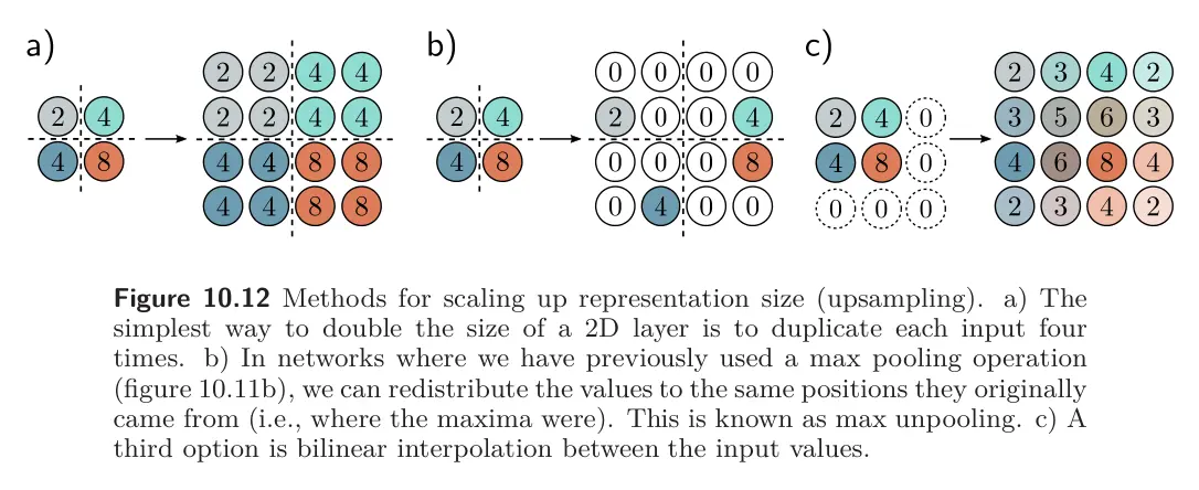 - The simplest way to scale up a network layer to double the resolution is to duplicate all the channels at each spatial position four times.