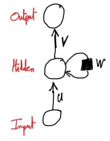 - is the hidden-to-hidden transformation weight matrix (allows information to persist over time)