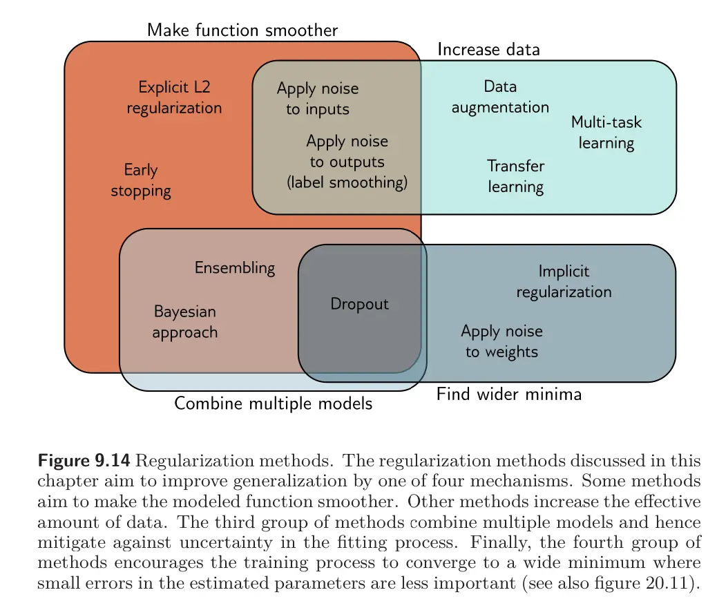 - Explicit Regularization adds an extra term to the loss function that changes the position of the minimum. This term can be interpreted as a prior probability over the parameters.